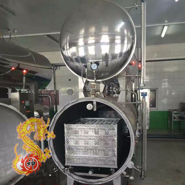 5、全自动控制系统。神龙杀菌锅整个灭菌工艺流程全部由电脑PLC控制,一次性完成,无需人工操作。采用图表平板,利用屏幕进行触摸控制,所有时段均由模拟感应器和自动阀控制,可以从单一杀菌工艺切换成多阶段杀菌工艺。压力和温度呈数字化显示,可将适用于任何产品的各种压力模式和温模式预先编制成程序输入计算机中。